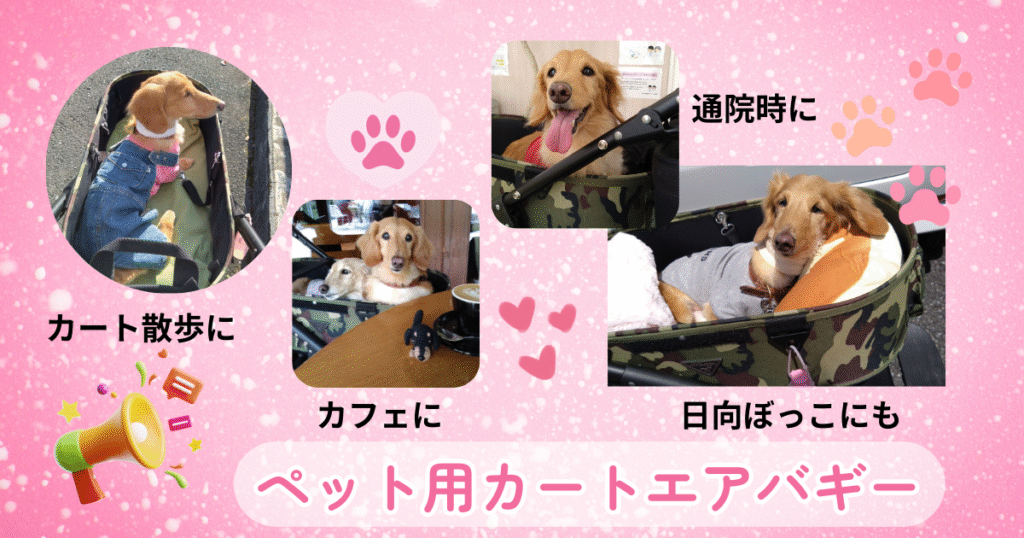 この場合も、カートに乗せておけば安心して移動でき、飼い主も犬もストレスなく過ごせます。