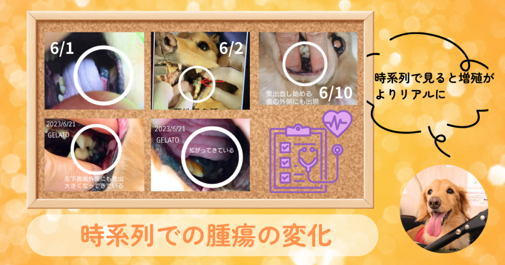内側に隠れていた腫瘍は、発見から約1か月で歯茎の外側まで広がっていったのです。このスピードには恐怖を覚えました。